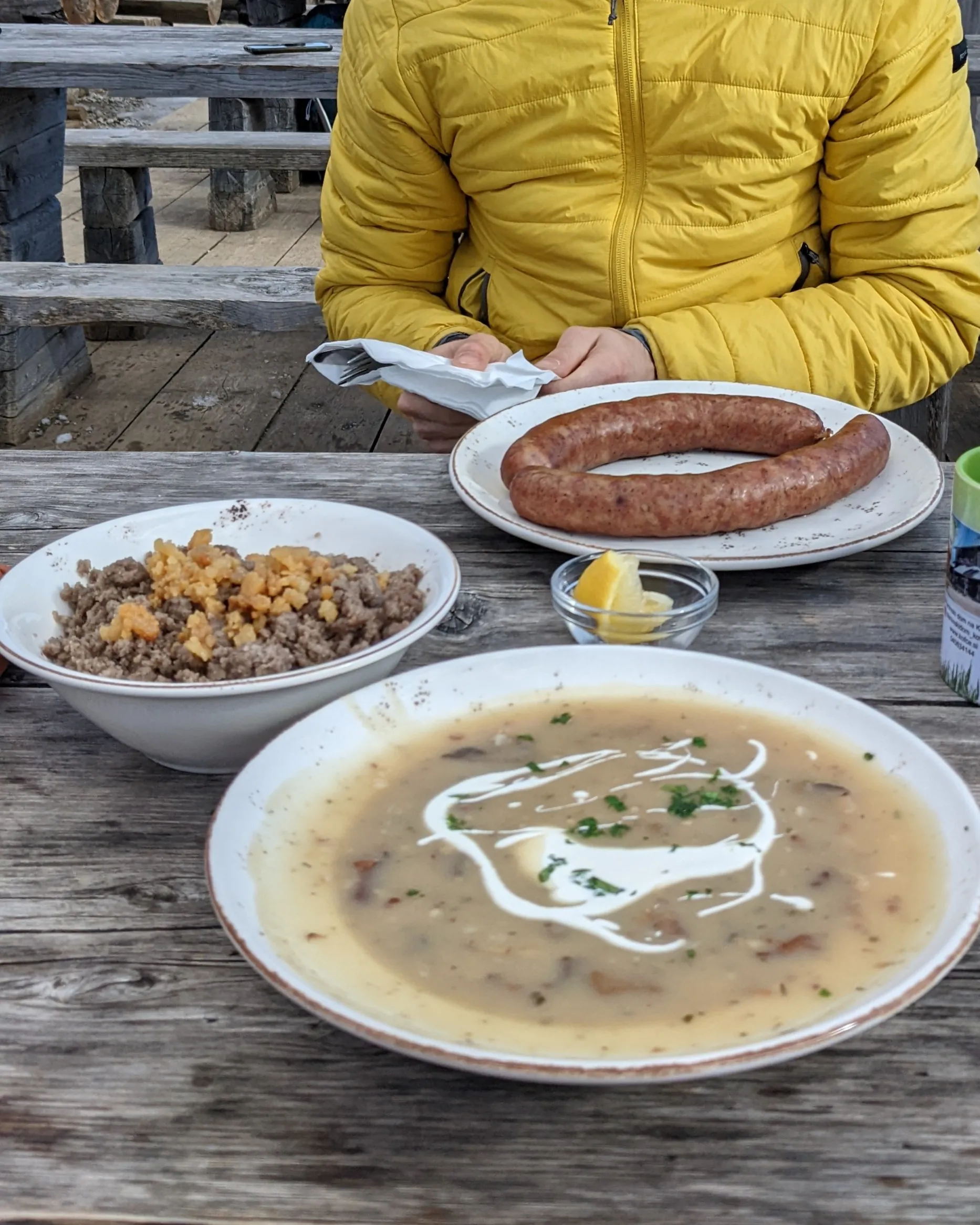 A big part of hiking in the mountains is the reward waiting at the top: a warm, home-cooked meal. Mountain huts aren’t restaurants in the usual sense - you won’t find fancy menus - but you can expect hearty, filling food made in a homely way. What’s served depends on the region: closer to Italy you might find gnocchi and pasta, while toward Austria the dishes lean more traditional. Prices are higher than in the valley, and most huts only accept cash, so plan ahead.
